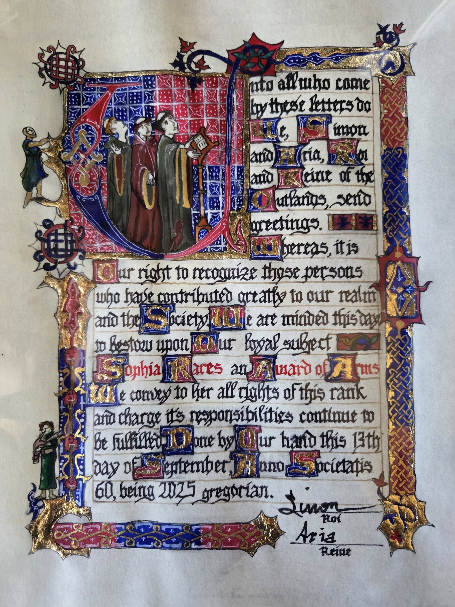 Award of Arms scroll for Sophia Rares by Dragoslava Ikonnikova