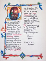 | 20:02, 23 September 2025 | Lothairvondrachenstein-averil-legionofgallantry.jpg (file) | 89 KB | Scroll by Averil duBois d'Avignon to commemorate Lothar von Drachenstein being inducted into the Legion of Gallantry | 1 | |
