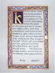 | 19:38, 23 September 2025 | Cainnleach-averil-countess.jpg (file) | 208 KB | Scroll to commemorate Cainnleach Uiseir of Glendalough becoming a countess. Scroll by Averil duBois d'Avignon. | 1 | |