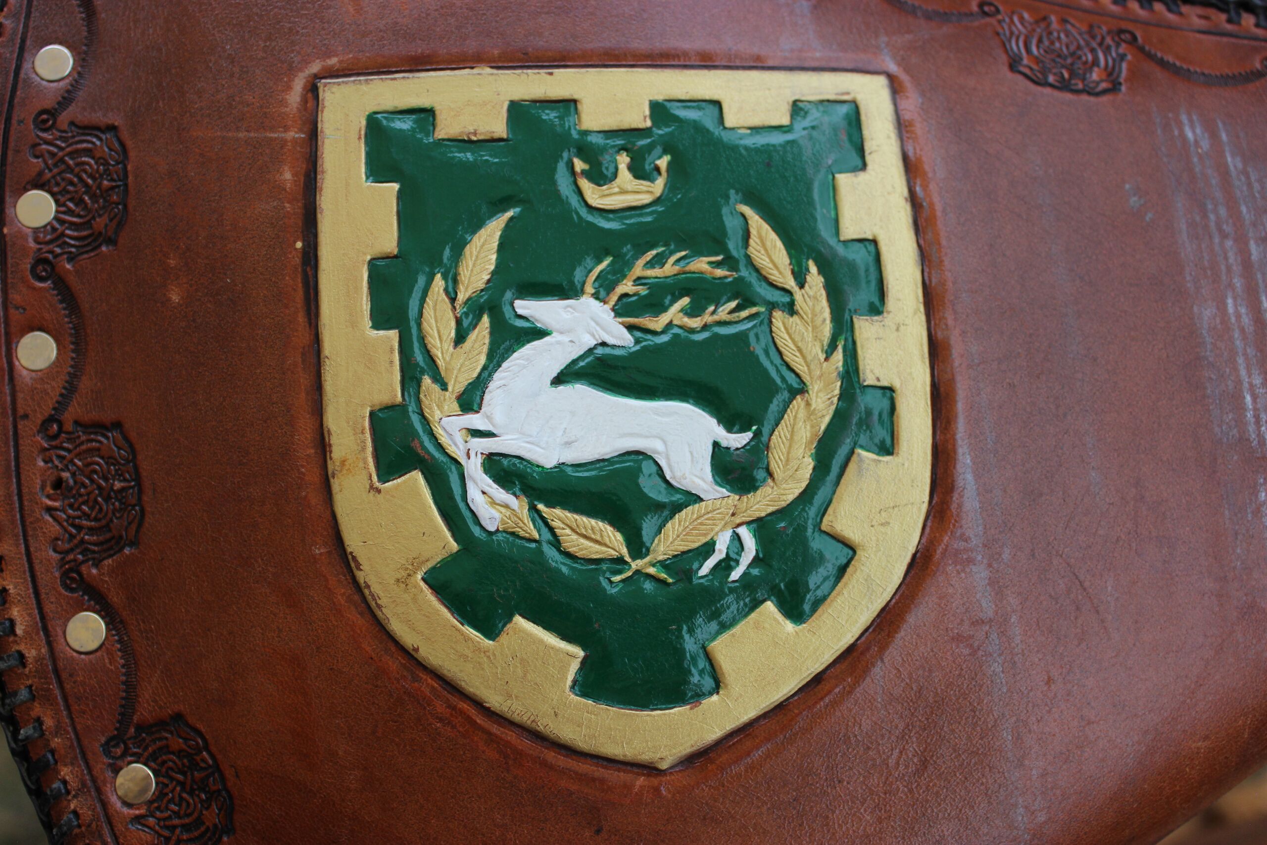 Detail of embossed Outlands heraldry on Thunderhead cover